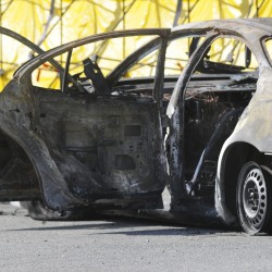 A woman on her way to work about 3:30 a.m. Aug. 13 discovered the white Pontiac with Rhode Island plates engulfed in flames in the back parking lot of Automatic Distributors, located at 22 Target Industrial Circle.