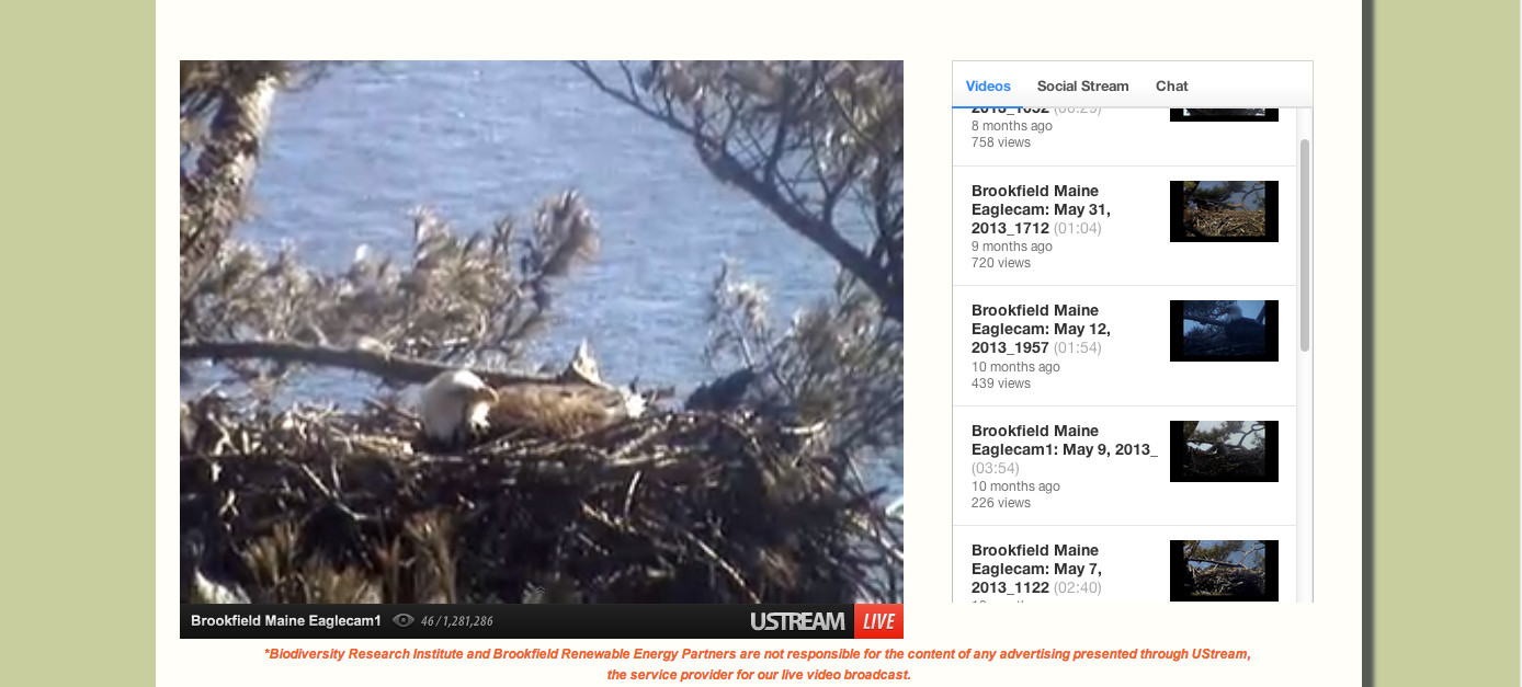 The two Maine eagle webcams are supported by the Maine Department of Inland Fisheries and Wildlife and the US Fish and Wildlife Service.