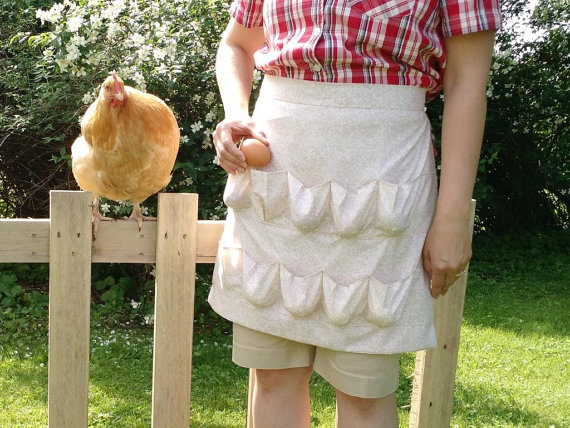 To get your eggs from the henhouse to your copper egg skelter, you can use your egg apron. “No more broken eggs or struggling with lids and latches with limited use of your hands,” writes the creator, Yoder Sewing Room, based in Ohio. The apron has gotten such an overwhelming response, the makers say they are back ordered four to six weeks.