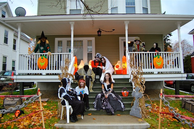Everyone that participates decorates and wears costumes in some capacity. Some opt for a simpler touch, with just a few lights, a jack o’ lantern or two and a basic costume.