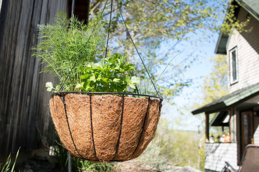 So if you’re new to container gardening, start small. Try one crop in one container. And hang it in a place where you can keep an eye on it, ensuring it gets enough water, nutrients and sun.