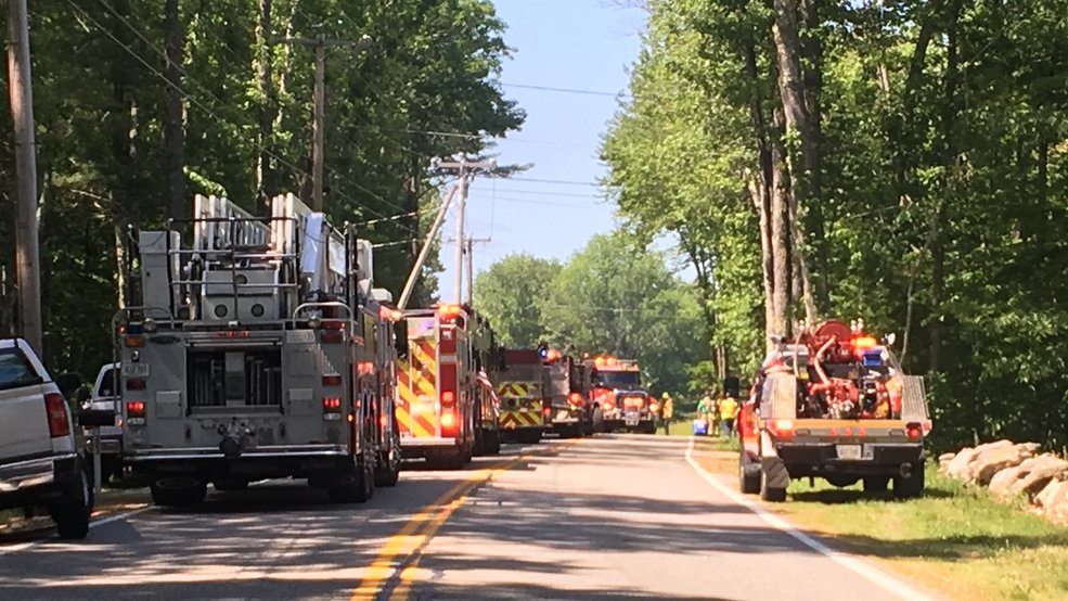 The fire was reported around 10 a.m. Sunday on Deering Neighborhood Road, which was closed for hours while the fire was brought under control.