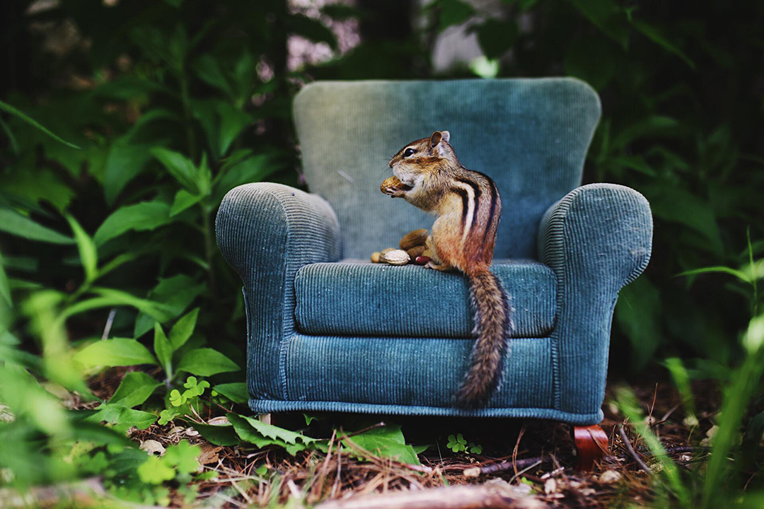 Kennedy: After so many pictures of them just stuffing their mouths with peanuts, I was like, “OK, I’ve already got these shots. What else can I do?” I had some dollhouse furniture laying around and I thought, “I’m going to throw a little chair in there.” It just kind of went from there.