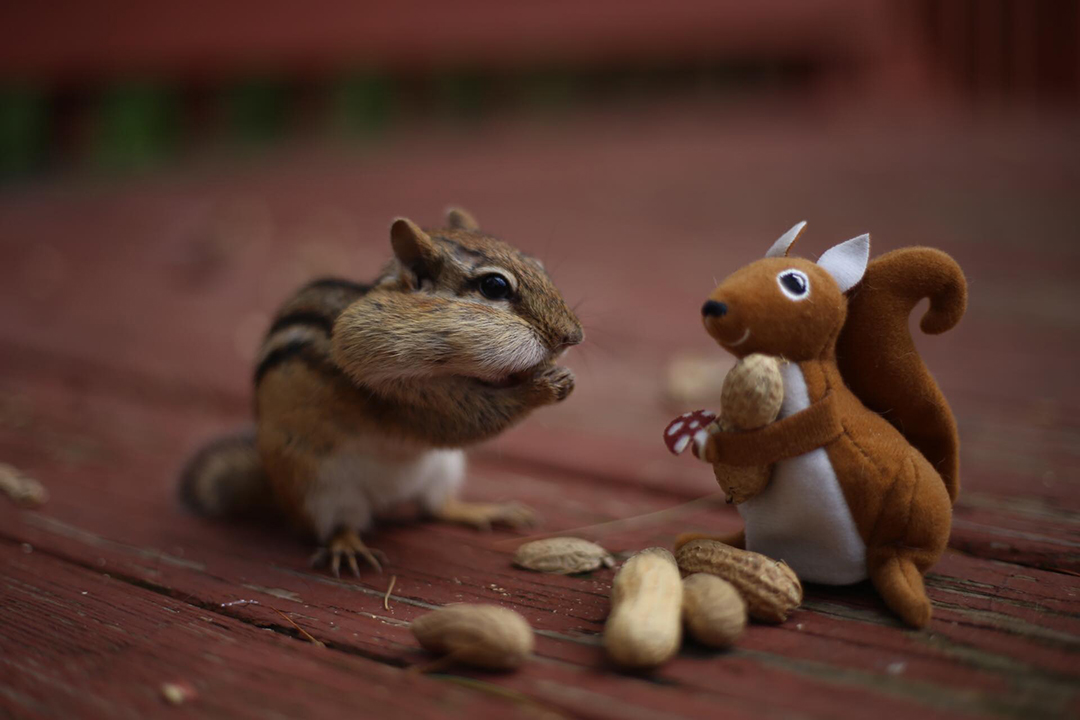 Q: How did you get the chipmunk to perch so perfectly in the lawn chair with the flag behind it?
