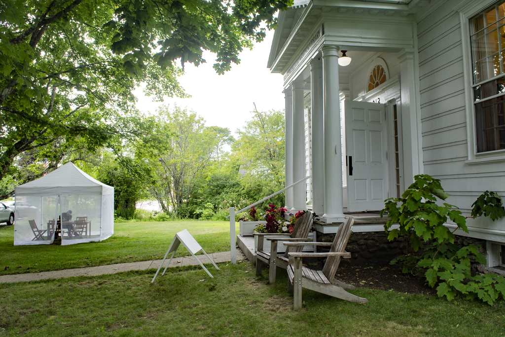 BROOKLIN, Maine — Call it internet behind a net: Friend Memorial Public Library offers free Wi-Fi to its patrons in a tent in the library’s front yard.