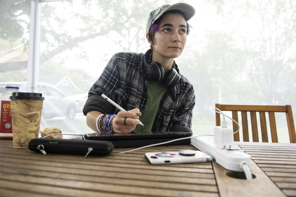 On a recent Tuesday, Connecticut visitor Max Farrar took advantage of the tent to draw characters from the Netflix TV series Stranger Things on an Apple iPad Pro.