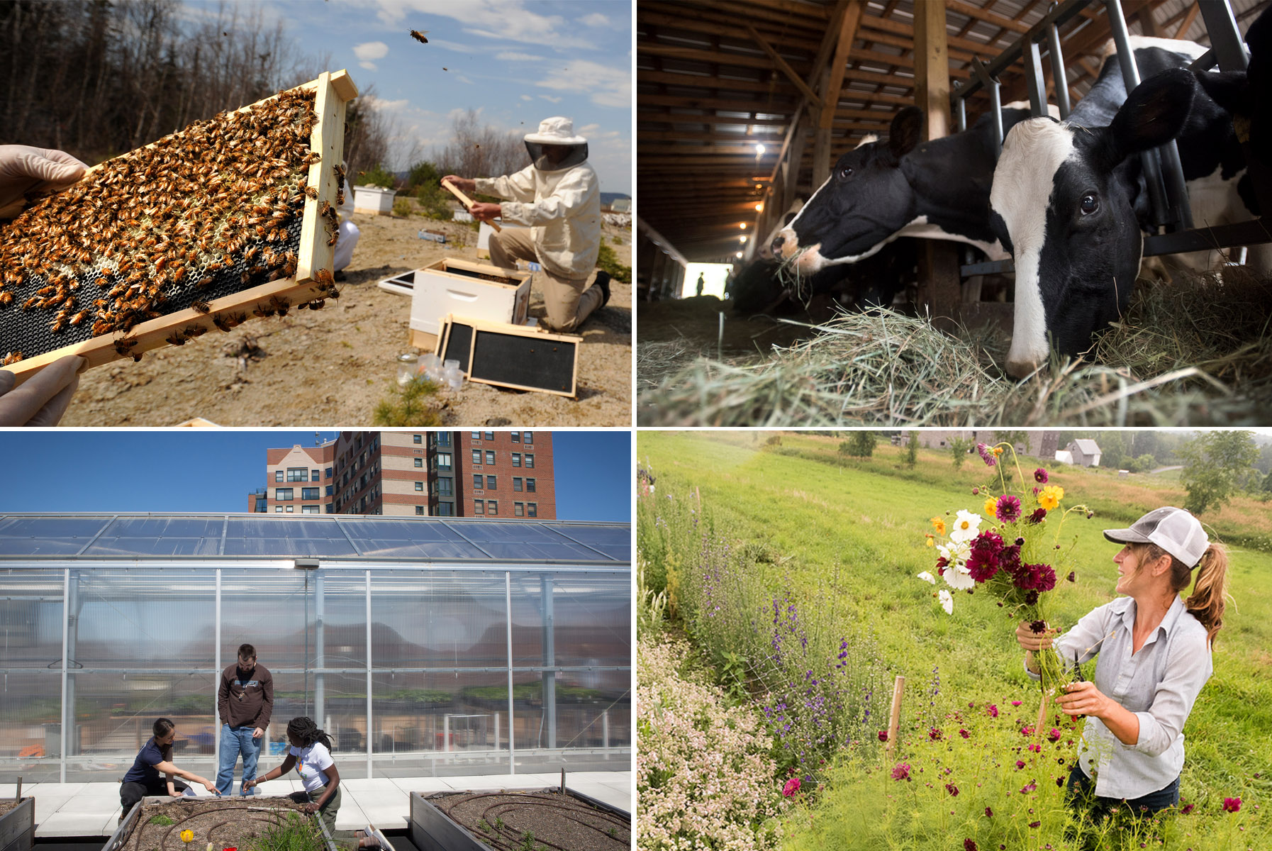 Some dairy farmers own their cow herds and their land, but others work on large dairy farms owned by corporations. Some dairy farms grow and harvest feed for their cattle on-site. They may also breed and raise heifers to sustain their dairy-producing populations.