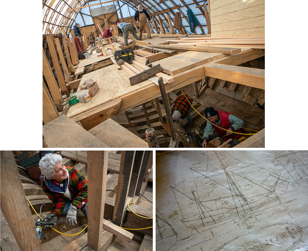 “Basically, we’ve got to be able to keep the water out,” lead shipwright Rob Stevens said last week. Stevens oversees the small navy of volunteer shipbuilders working on the boat since 2011.