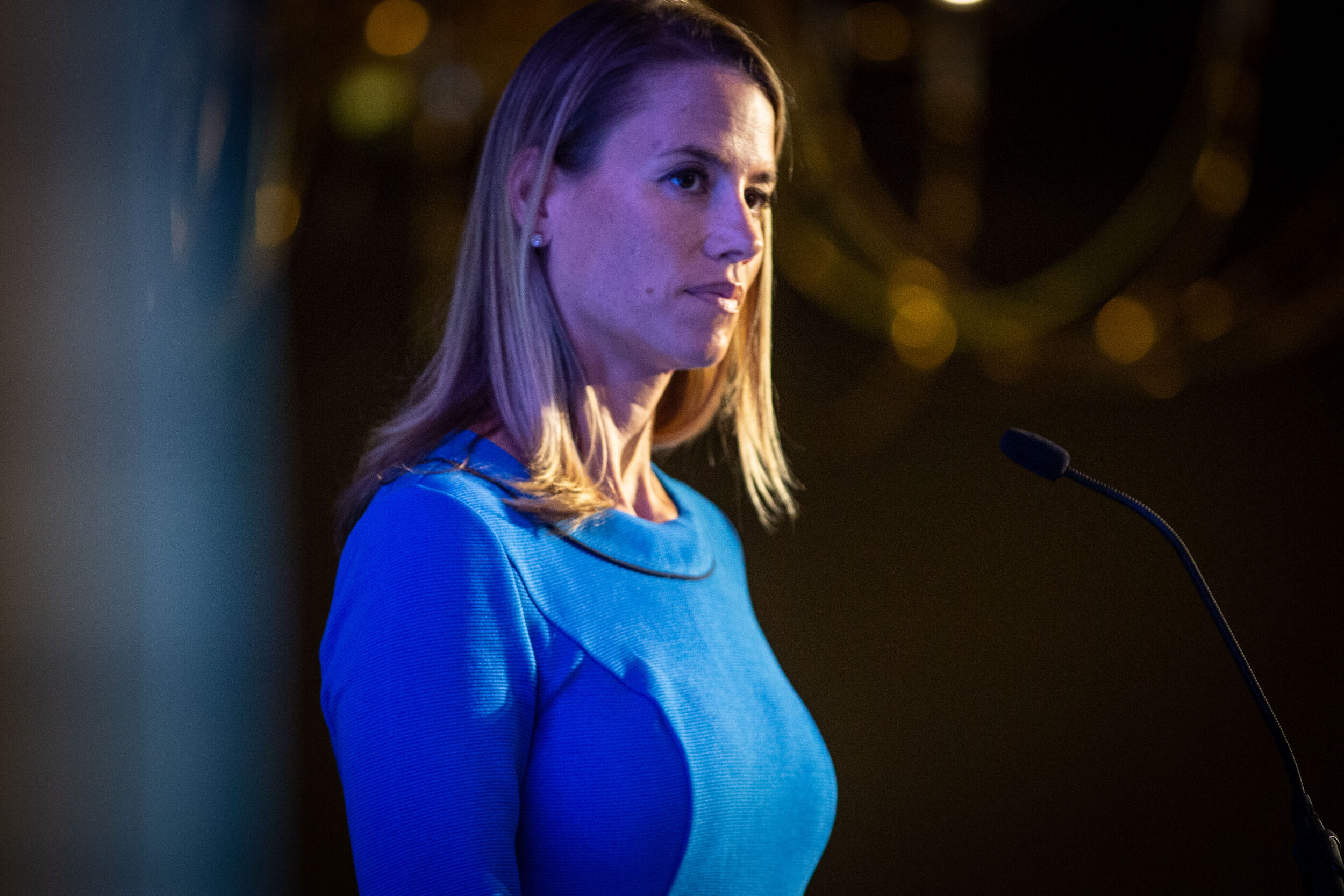 Quincy Hentzel, CEO of the Portland Community Chamber of Commerce, onstage at a forum in Portland. Credit: Troy R. Bennett / BDN