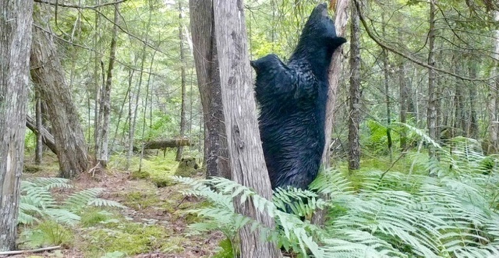 Today’s trail camera photo shows a big black bear standing up, staring up into a tree. The explanations are endless, but I’d like to hear your thoughts. Feel free to offer up a fitting caption — serious or whimsical — in the comments section, or via email.