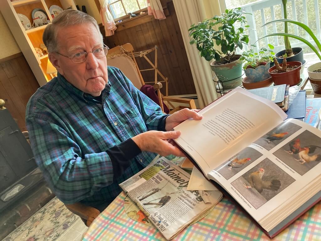 Hawes, 86, is what is known as a poultry fancier — a person who breeds, raises and shows poultry. He’s on the board of directors of Central Maine Bird Fanciers and he holds a doctorate in chicken genetics. While these fancy show birds lay eggs, mate, cluck, crow, quack, honk or fly like their barnyard brethren, that’s where the similarities stop. Show birds are subject to intense scrutiny by judges, and they’re only allowed to reproduce if they meet every exacting standard of the breed.