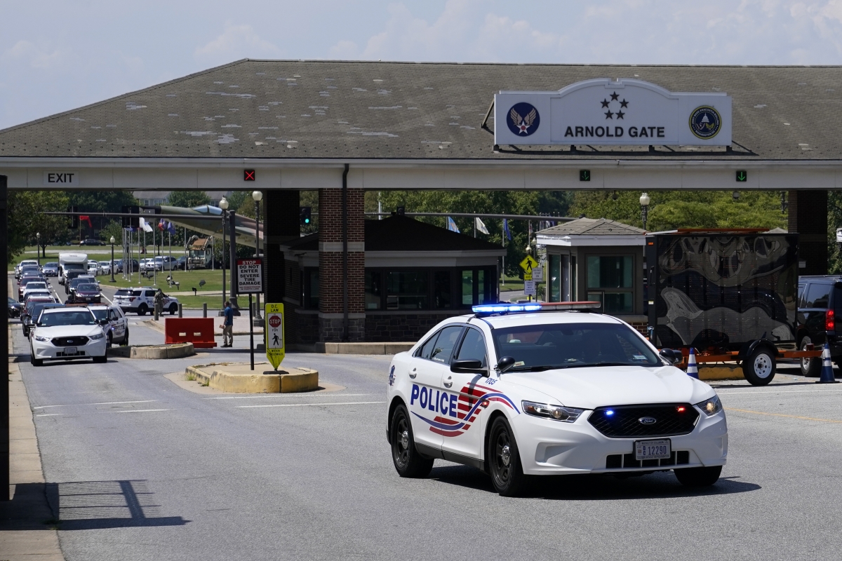 Washington’s Metropolitan Police Department said D.C. officers were responding to a report of shots heard near the base when the suspects ran onto the grounds. Police said they had no reports of any shooting victims. A line of cars sat on the road at one entrance as security personnel blocked routes while police searched.