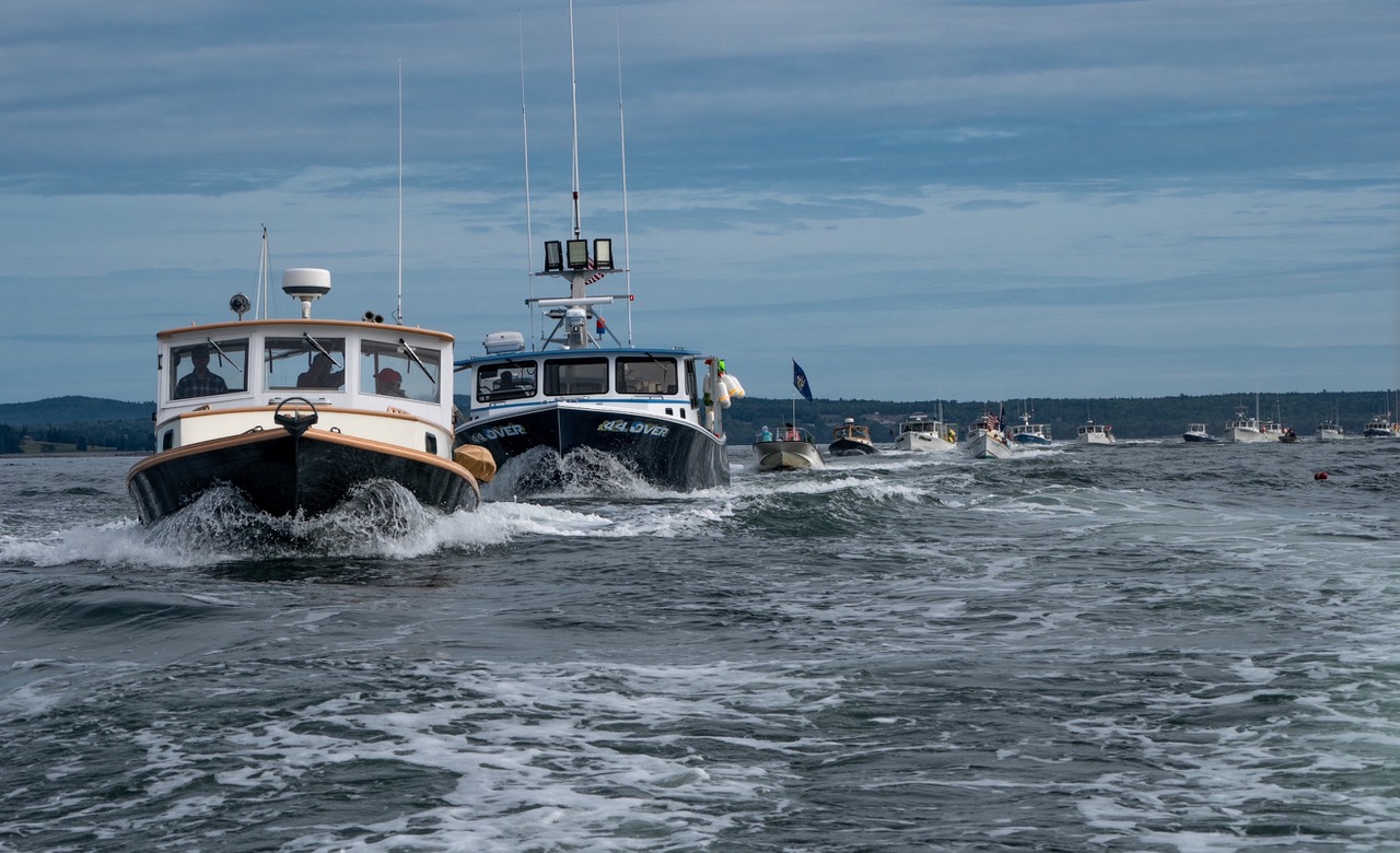 More than 125 boats participated in a weekend protest against plans for an aquaculture operation in waters near Acadia National Park.