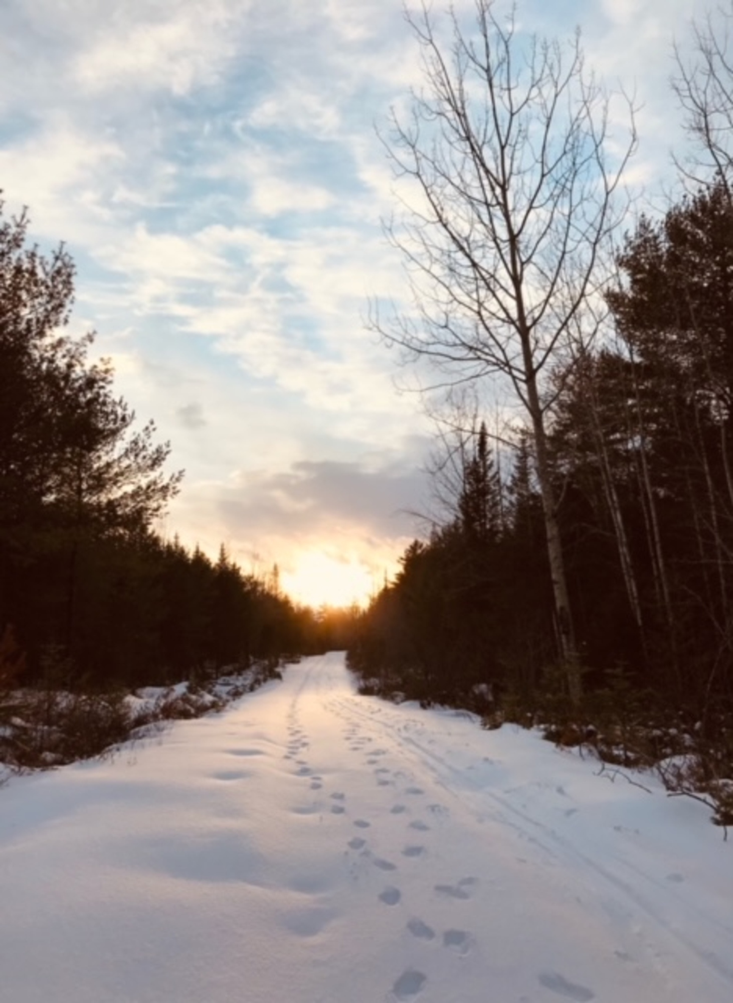 In the snow-covered minimalism of a winter hike, my opportunity for zen is more accessible. I am often alone, but for the creatures who stir invisibly behind curtains of evergreen and snow drifts. Their stories I glean mostly from the tracks left in soft snow; the rambunctious happenings of nocturnal life are sprawled across the trails in elegant etchings and tell of tabloid-worthy drama, and matters of life and death. I follow the impressions of raccoon feet to trailside oak trees, chaotic rabbit tracks into the brambles, and the faintest wingstroke of an owl upon powdered snow, and I know the night before was alive with the theatre of the wilderness.