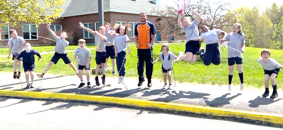 “The students sold raffle tickets for major prizes, including a kayak, an auto detailing package, and a space heater,” said Principal Matthew Houghton. “The students also set up personal jumping challenges like endurance jumping, how long they could jump in one-minute intervals; the highest number of consecutive jumps; and skills jumping like walking, running, and crossovers. They were very creative.”