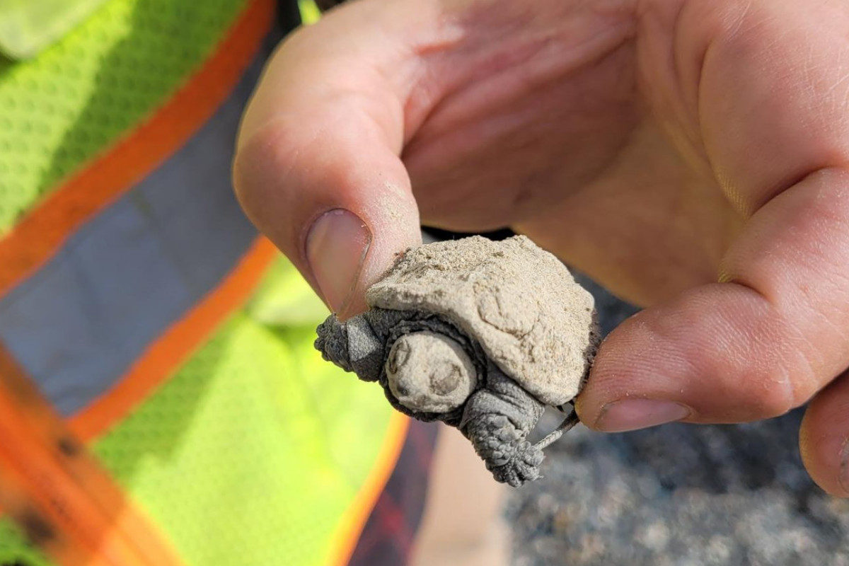 PORTLAND, Maine — A Maine DOT crew found a tiny turtle on a job site Tuesday.