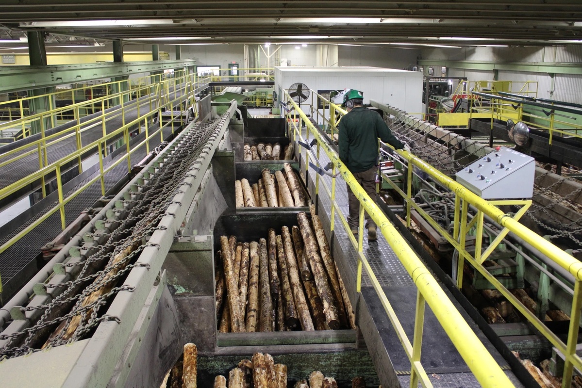 One morning at the Irving sawmill in Ashland late last month, hundreds of logs were moving through a mechanical sorting machine the size of a high school swimming pool, tumbling into enormous metal hoppers before being whisked away on a conveyor belt to be processed.