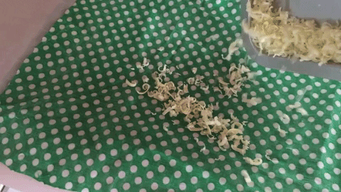 I was most excited to pick out my fabric. To boost the sustainability bonafides of my beeswax food wrap (should I call them Sam’s Savers™?), I headed to the thrift store to peruse through the scrap fabric on sale. I chose a green and white polka dot pattern, though I was tempted by a lavender fabric printed with sleepy owls.