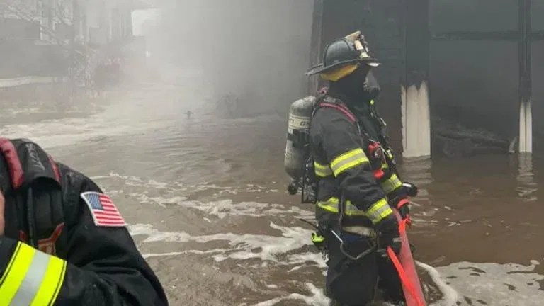 Officials say firefighters were forced to navigate almost waist-deep water from the storm surge.